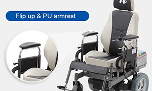 Power-padded frame Foam seat with reclining backrest Folding seat Adjustable armrests Removable and folding footrest.