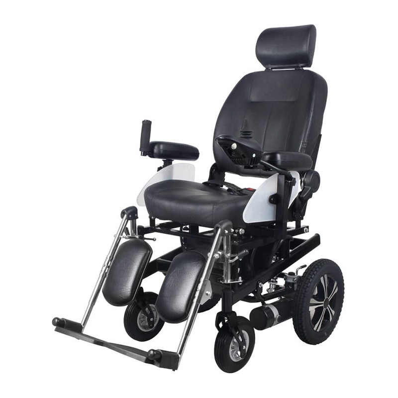 Sale of electric wheelchair comfort/standard in Tunisia with good price/quality. It has a potty, an adjustable headrest, a single/adjustable backrest, and a foldable calf rest.