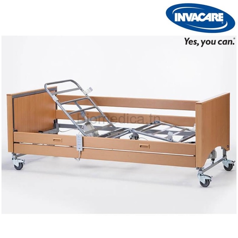 Sale of Invacare electric medical bed with 4 joints, variable height, foldable and transportable in Tunisia with good quality/price ratio. It is comfortable and practical and equipped with 3 electric lifting functions: height adjustment, bust lifting and folding into reclined chair mode.