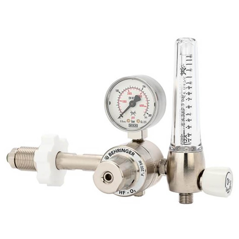 Sale Medical pressure regulator + BEHRINGER humidifier/bubbler in Tunisia with good value for money. Also called HF/FLUX pressure regulator for tanks, This compact medical oxygen pressure regulator for medical gas has a pressure gauge to display the inlet pressure and includes an outlet flow meter for dosing medical oxygen or air.