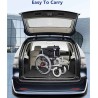 Le fauteuil roulant pliant à moteur et avec une batterie haute puissance est de conception ergonomique. Le dos peut être incliné jusqu'à 8 degrés et l'assise a été approfondie de 6 cm. Les points d'appui du poids corporel sont répartis uniformément vers la cuisse, les fesses et le dos, fournissant trois points d'appui avec une force uniformément répartie. Le fauteuil roulant est facilement pliable, occupe un minimum d’espace et est simple à transporter. Il propose également des modes de conversion manuelle et électrique, éliminant ainsi les problèmes liés à l'alimentation de la batterie.