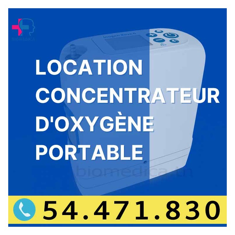 Location concentrateur d'oxygène portable Tunisie à bon prix par semaine/mois. Localisation sur le grand Tunis à Carthage, Sidi Bou Said, Soukra, Mannouba, El Manar, El Omrane, Bardo, La Goulette, Ennasr, El Menzah 6, El Menzah 7, El Menzah 8, Riadh Landlous et dans toute la Tunisie.